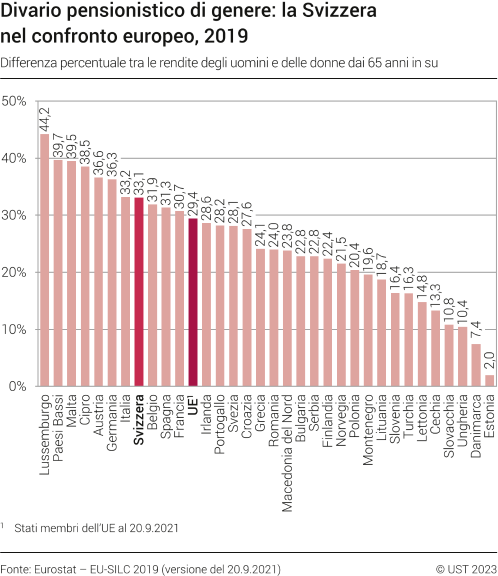 Divario pensionistico di genere: la Svizzera nel confronto europeo - 2019 | Diagramma | Ufficio federale di statistica