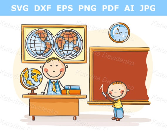 Cartoon scuola clipart illustrazione, insegnante e un allievo alla lezione, ragazzo della scuola png svg, doodle bambino in classe, lavagna - Etsy Italia