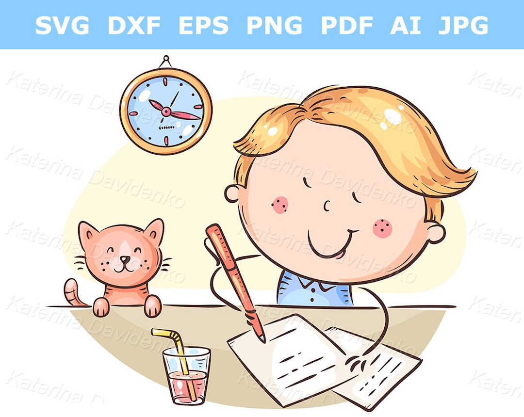ClipArt di ritorno a scuola Ragazzo che scrive una lettera o fa i compiti alla scrivania - Etsy Italia