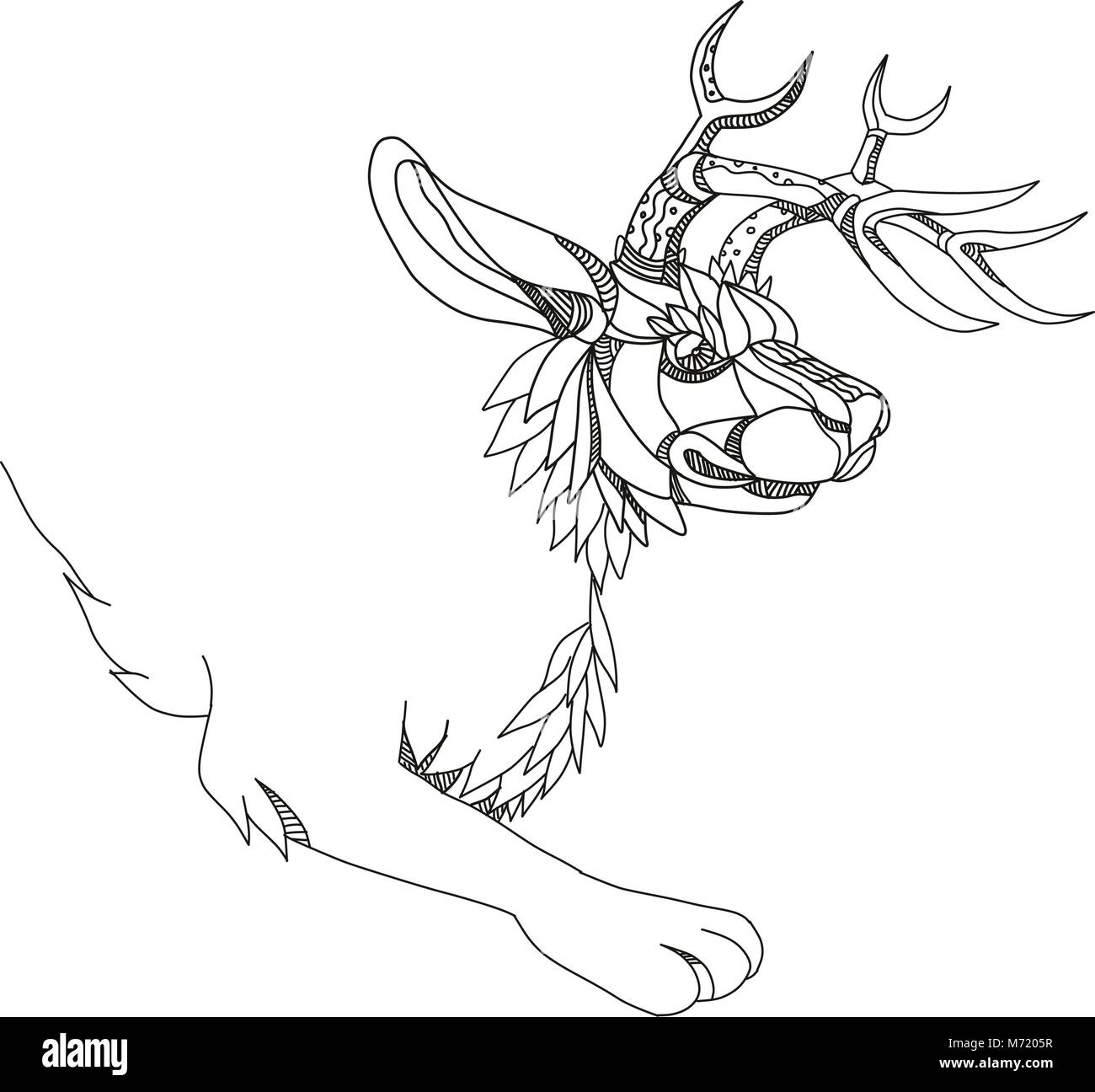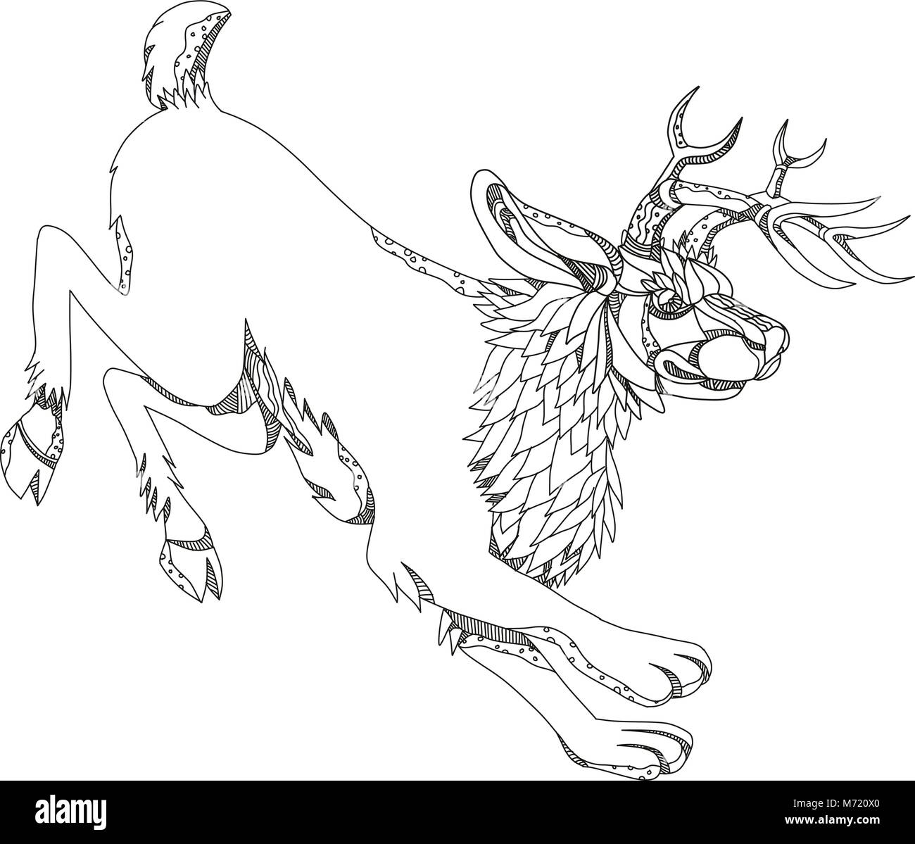Doodle arte illustrazione di un jackalope, un mitico animale del Nord il folklore americano descritto come un jackrabbit con corna di antilope fatto in bianco e nero e w Immagine e Vettoriale -