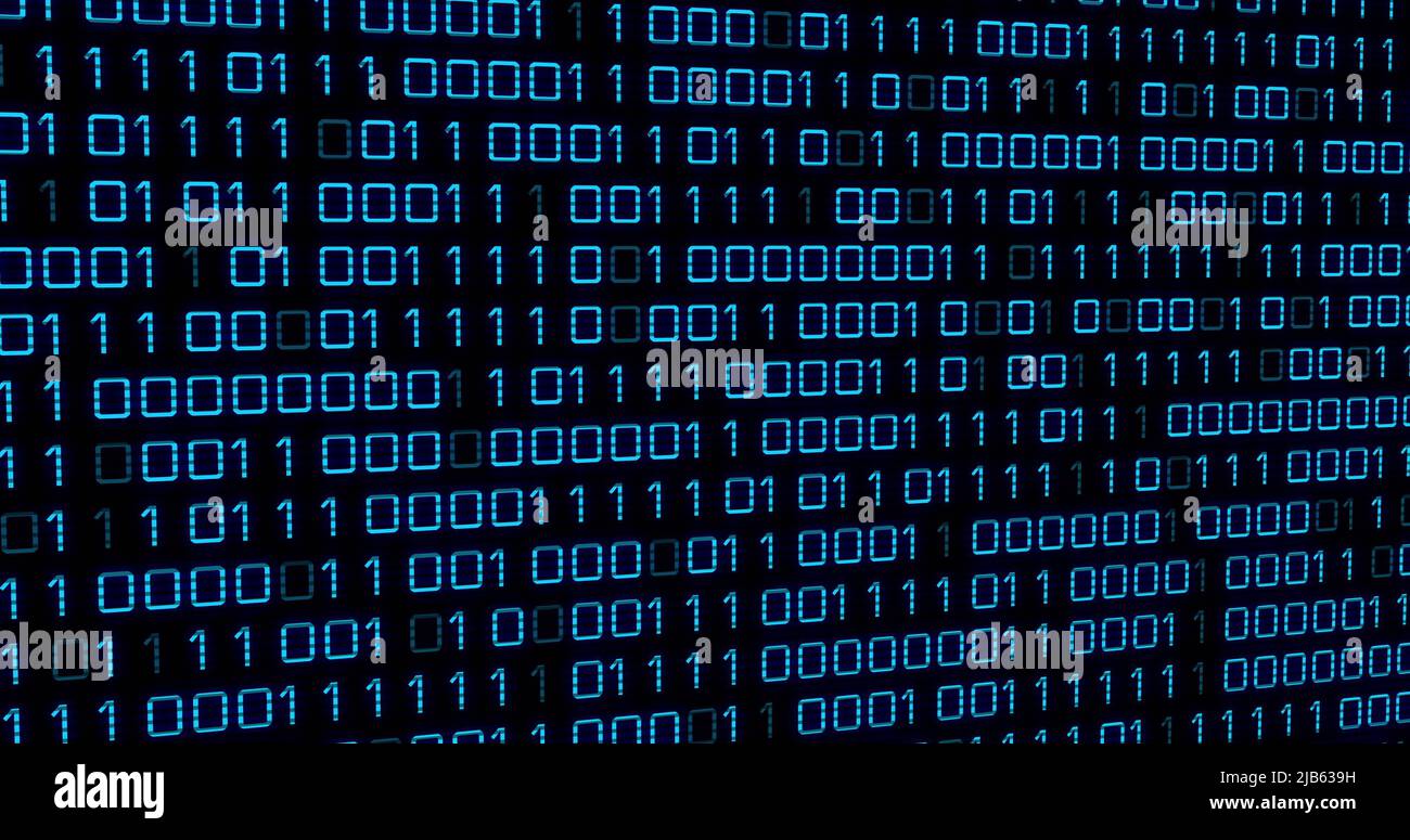 Immagine del codice binario blu che cambia su sfondo nero Foto stock - Alamy