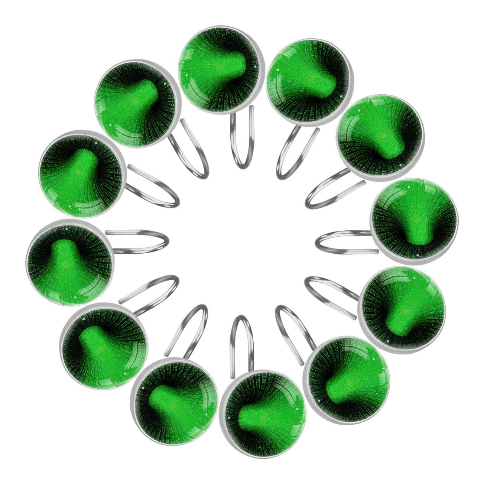 12 ganci decorativi per tende da doccia, a prova di ruggine, anelli per tende da doccia, ganci per tende da doccia,Codice binario del computer 3D Swirl verde divertente : Amazon.it: Casa e