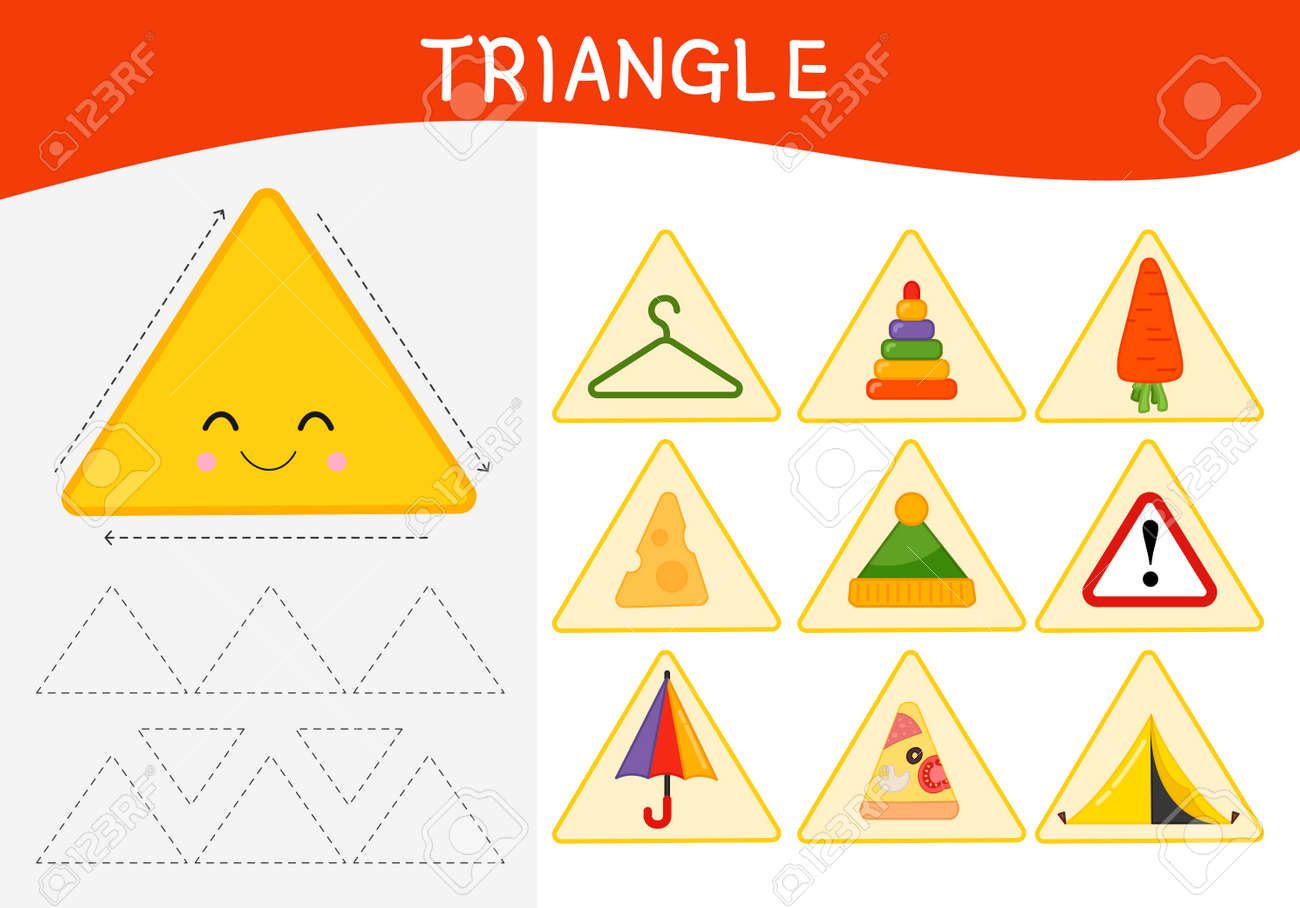 Apprendimento Della Forma Geometrica Di Base Per I Bambini. Triangolo Carino. Illustrazione Vettoriale - Illustrazione di foglio, figura: 221191645