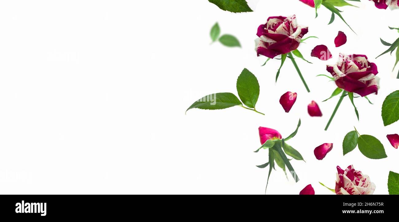 Caduta di fiori di rosa su sfondo bianco isolato, spazio copia Foto stock - Alamy