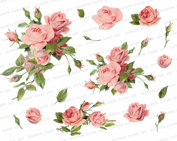 Set clipart rosa vintage, fiori di sfondo floreali trasparenti rosa, clipart floreale digitale PNG Rose, grafica a download istantaneo 2897 - Etsy Italia