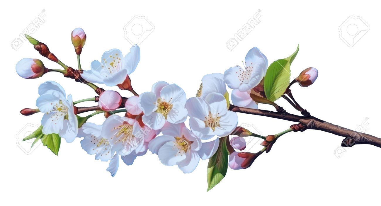 Immagini Stock - Primavera Bianca Rosa Ciliegia O Fiore Di Mela Fiori Ramo Di Un Albero Con Foglie Verdi Isolato Sfondo Trasparente Png. Ai Generativo.. Image 202341102