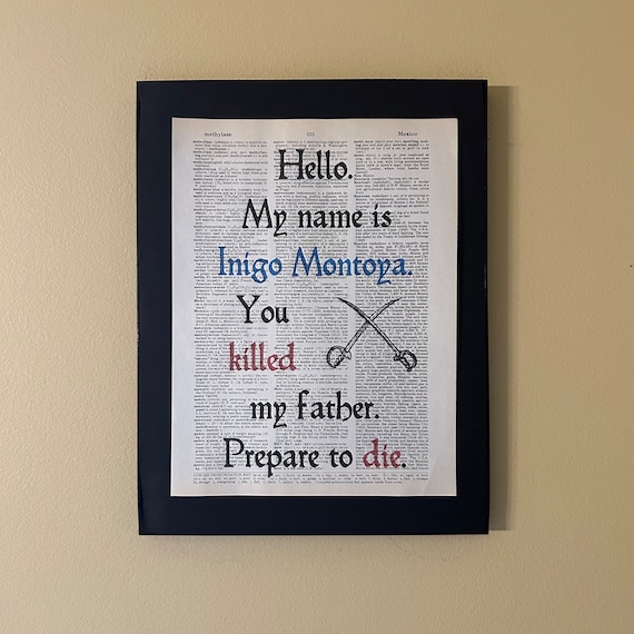 Ciao. Mi chiamo Inigo Montoya. Hai ucciso mio padre. Preparati a morire Principessa sposa Stampa del dizionario Regalo letterario Cinefilo libresco - Etsy Italia