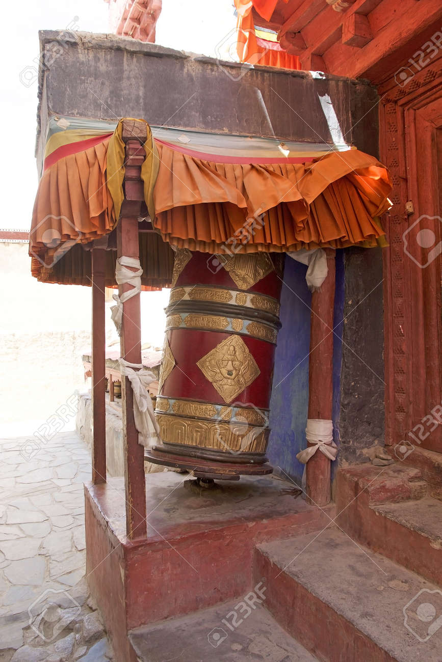 Immagini Stock - Ruota Di Preghiera Al Palazzo Di Stok In Ladakh, India. La Pietra Di Mani, Inscritta Con Un Mantra, È Una Forma Di Preghiera Nel Buddismo Tibetano. Image 85864299