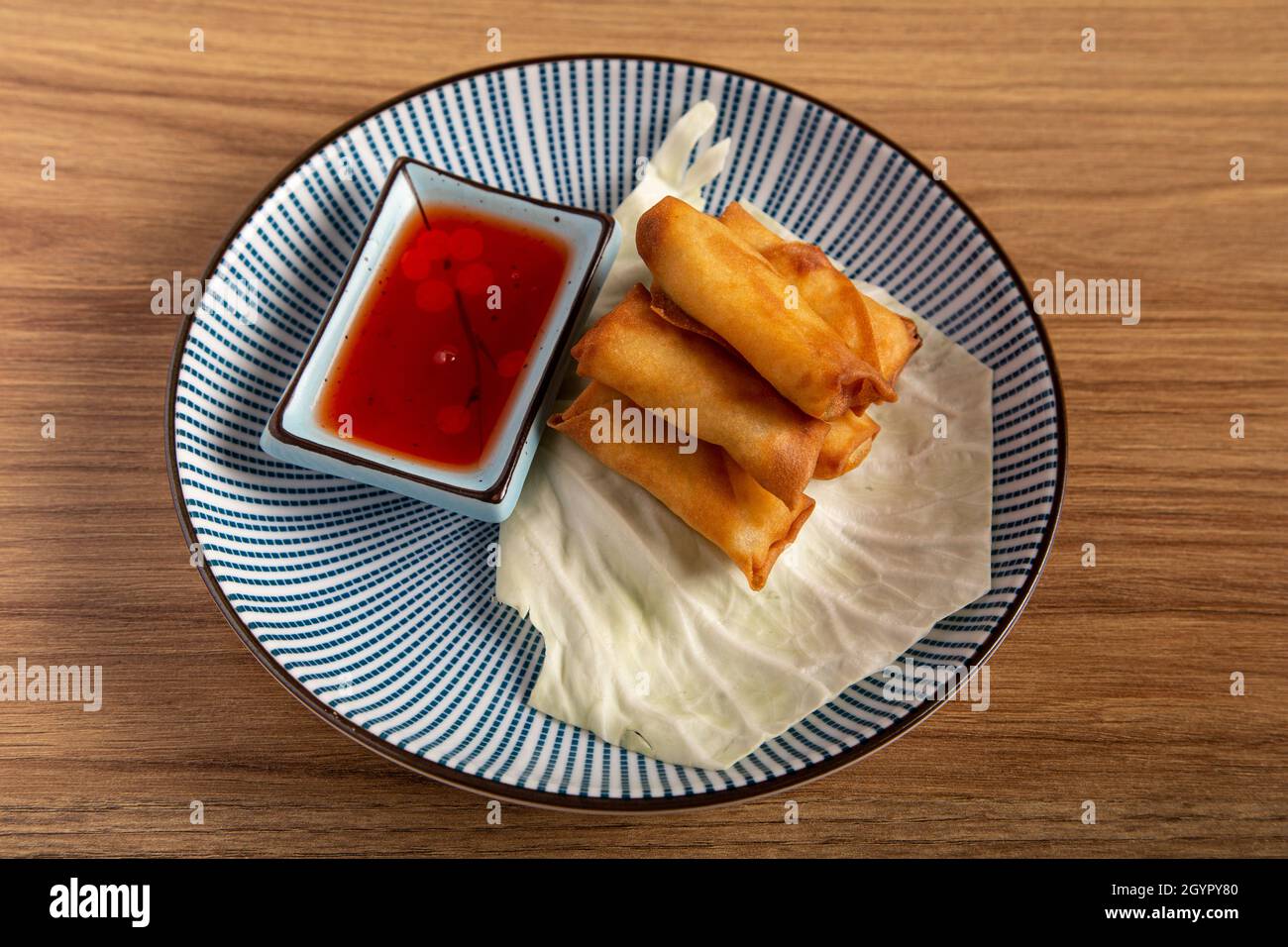 Involtini primavera con gamberi con salsa di peperoncino dolce. cucina asiatica. 724870 Stock Photo su Vecteezy