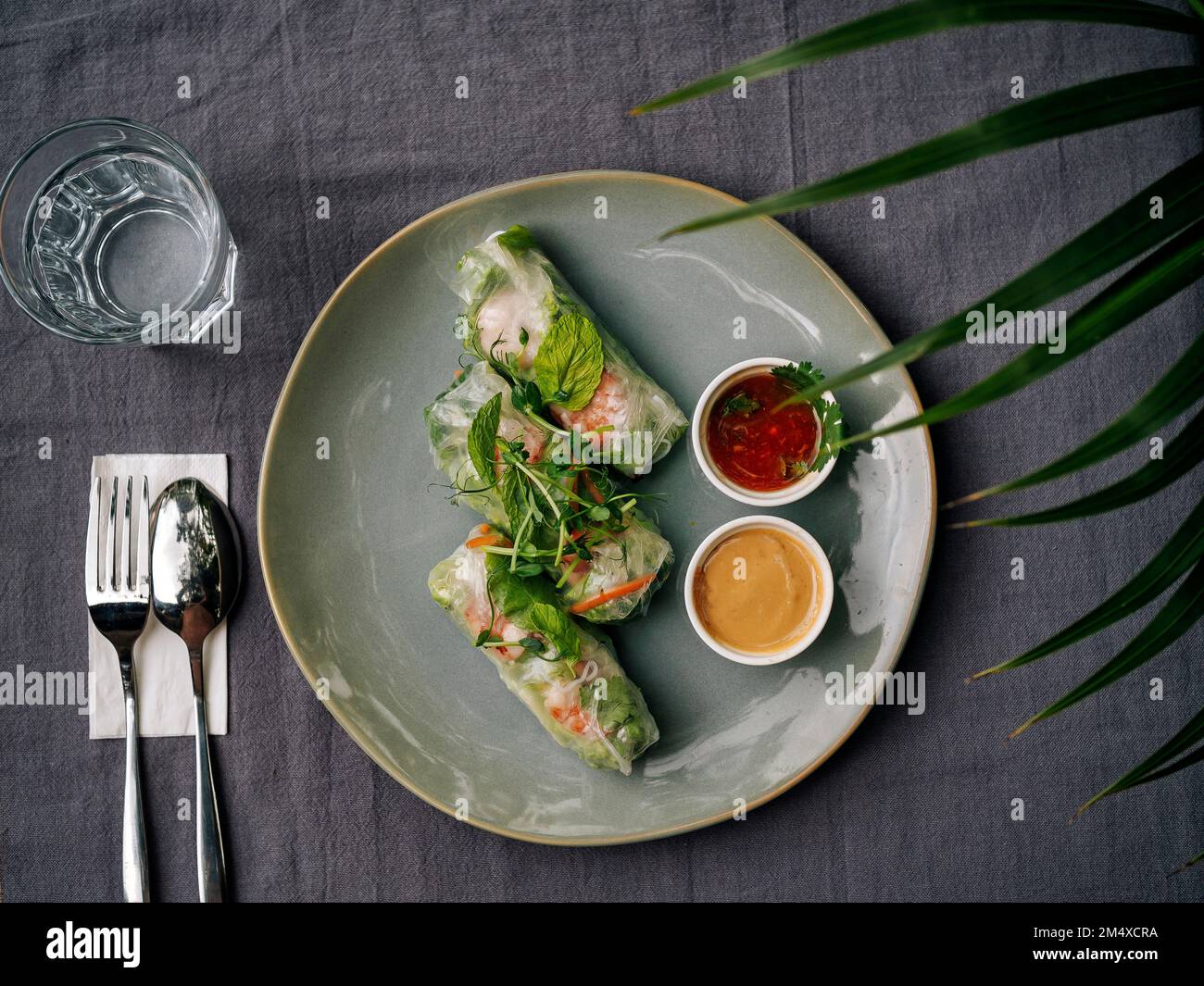 Involtini primavera vietnamiti con gamberetti alla menta e vermicelli | Foto Premium