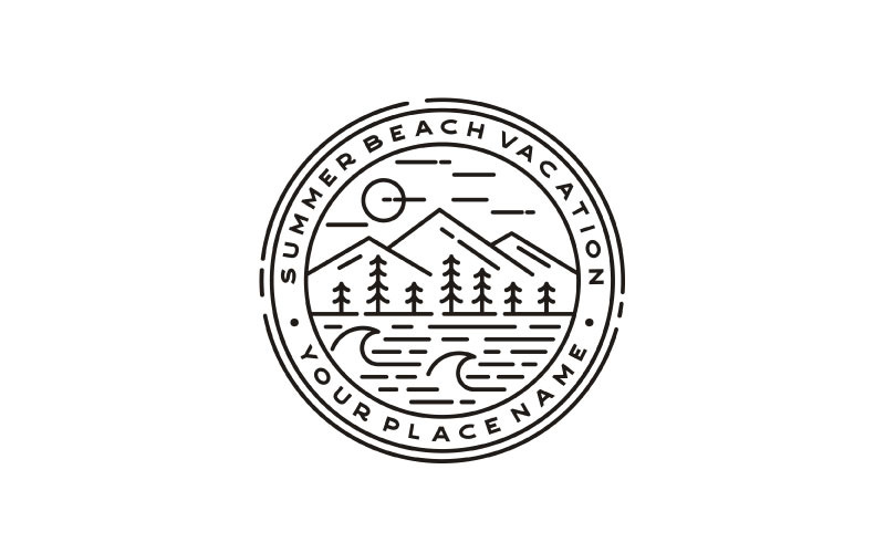 Montagna, mare, onde, pino e sole per lispirazione per il design del logo di viaggi avventura