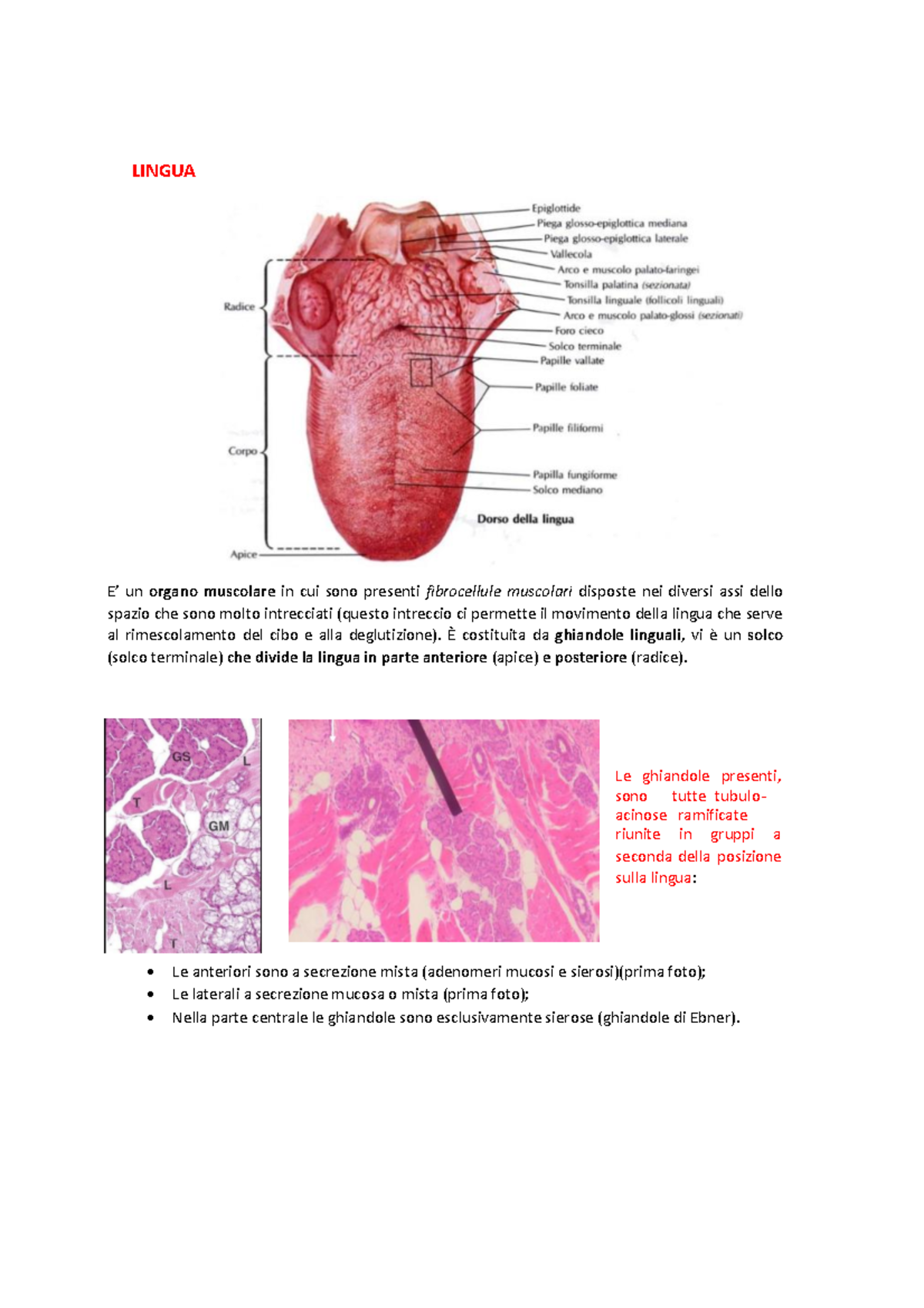 Istologia 6 - Appunti 6 - LINGUA E' un organo muscolare in cui sono presenti fibrocellule muscolari - Studocu