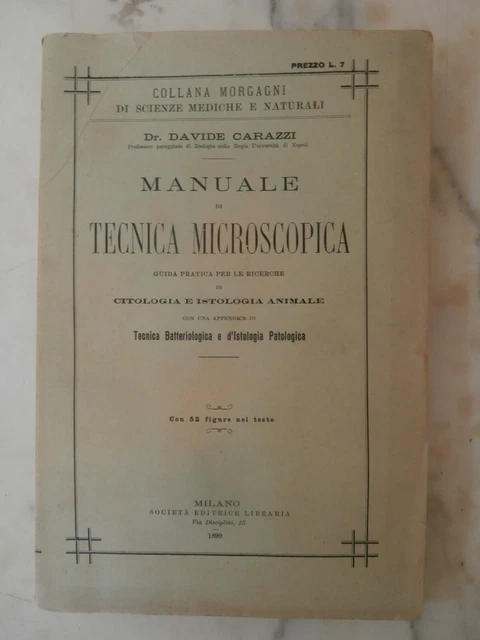 ANTICO LIBRO MANUALE tecnica microscopica 1899 Carazzi 52 figure prima edizione EUR 19,95 - PicClick IT