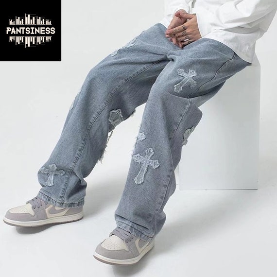 Y2K Cross Streetwear Jeans Baggy Hip Hop Loose Pants Harajuku Streetwear Denim Bottoms Grunge Urban Rap Fan Jeans - Etsy