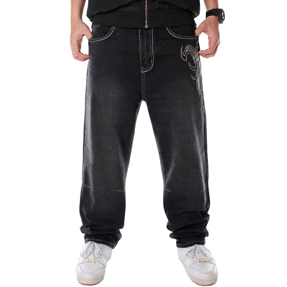 Plus Size Hip Hop Baggy Jeans Men Letter Print Hip Hop Dance Pants Skateboard Jeans Loose Style Most Popular Jeans For Men | Wish