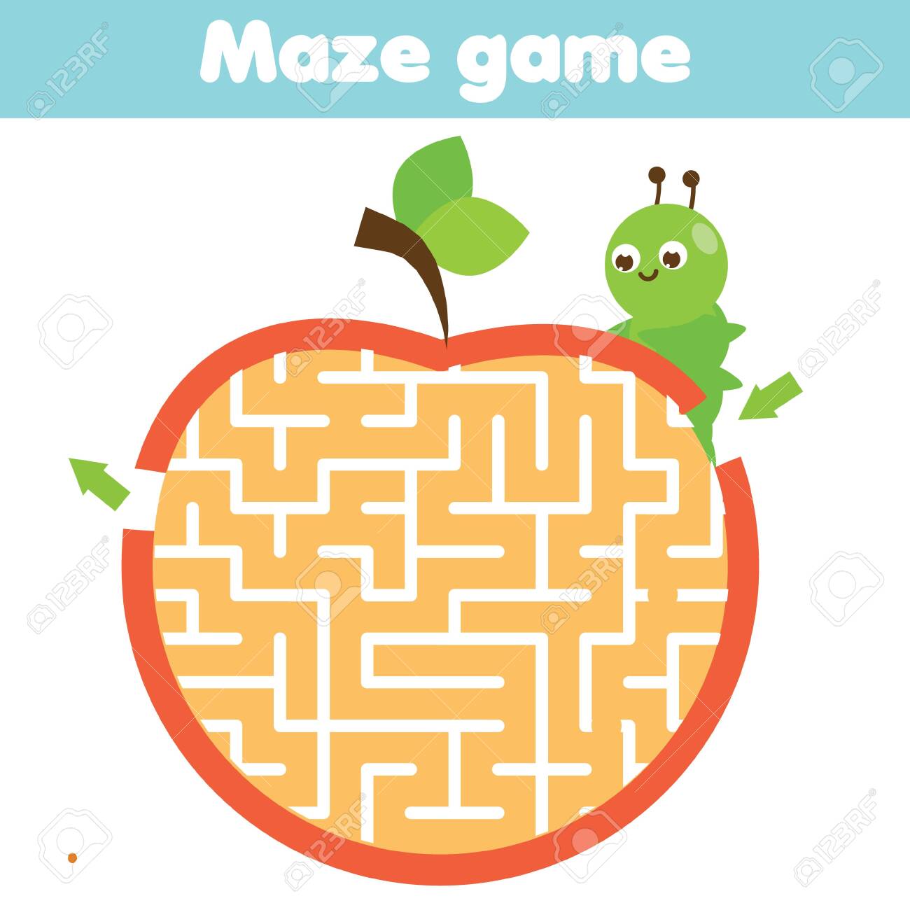 SVG, Vettoriale - Labirinto Per Bambini. Aiuta Il Bruco A Passare Attraverso La Mela. Scheda Attività Per Bambini. Gioco Educativo. Foglio Di Lavoro Sul Tema Degli Insetti. Image 134401793