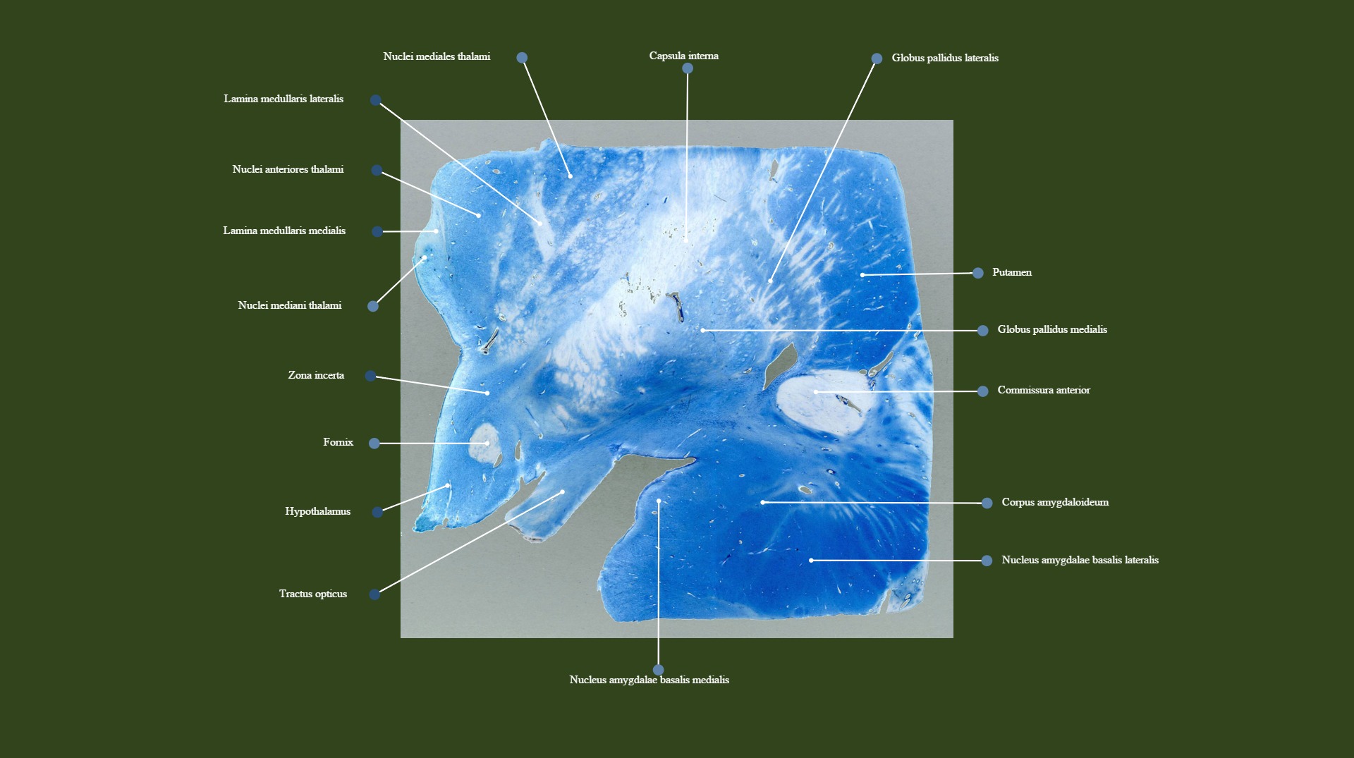Thalamus, capsula interna, basal nuclei and amygdala - Nissl staining