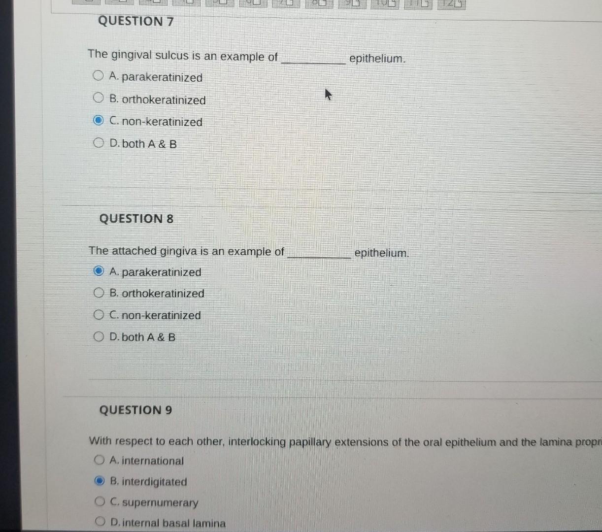 Solved QUESTION 7 The gingival sulcus is an example of A. | Chegg.com