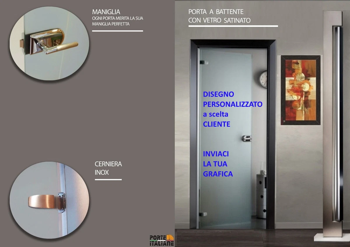 Porta battente interna vetro con disegno MISURA 70/80 x 210 con telaio in Legno | eBay