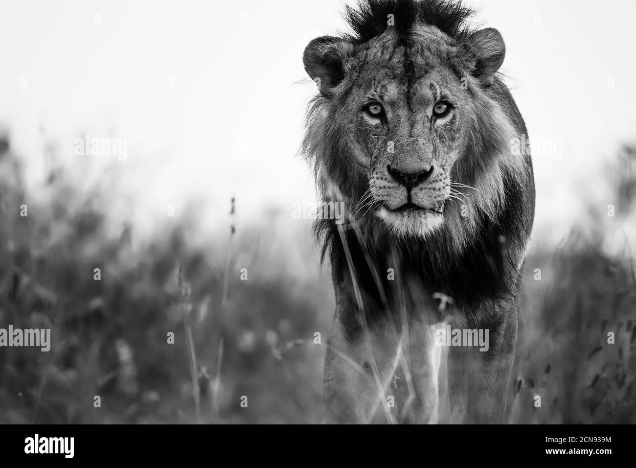 Ritratto del Leone bianco e nero, Maasai Mara, Kenya Foto stock - Alamy