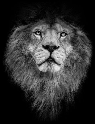 Fotografia Lion, black and white head shot of an adult Lion su EuroPosters.it