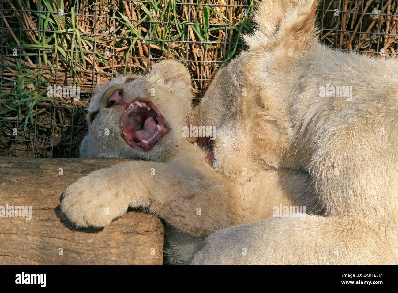 Leoni bianchi che giocano nel Lion & Safari Park, Gauteng, Sud Africa Foto stock - Alamy