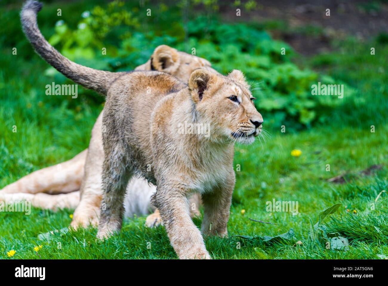 Immagini Stock - Due Leoni Bianchi Stanno Giocando Nello Zoo Della Tailandia. Image 142853321