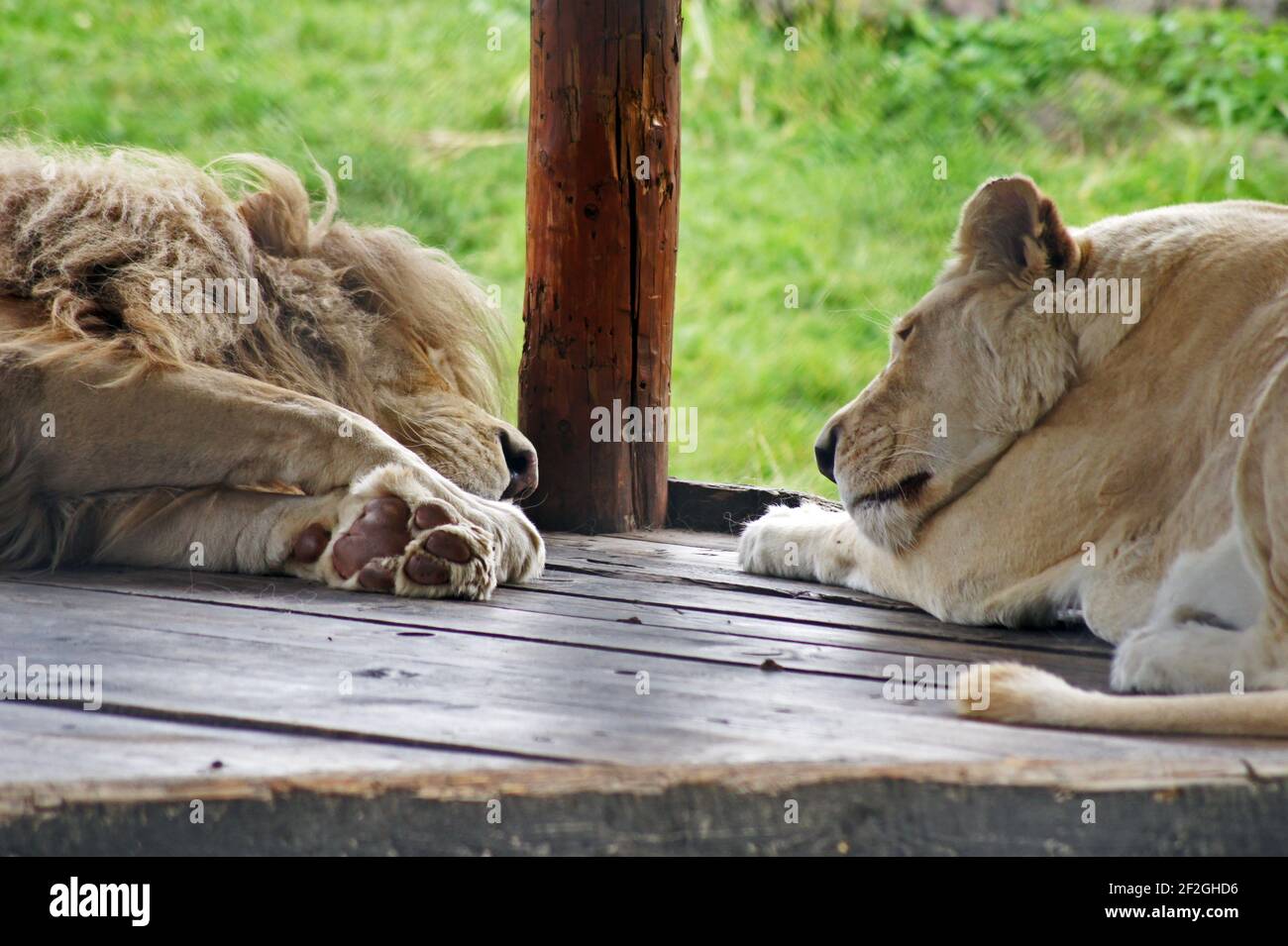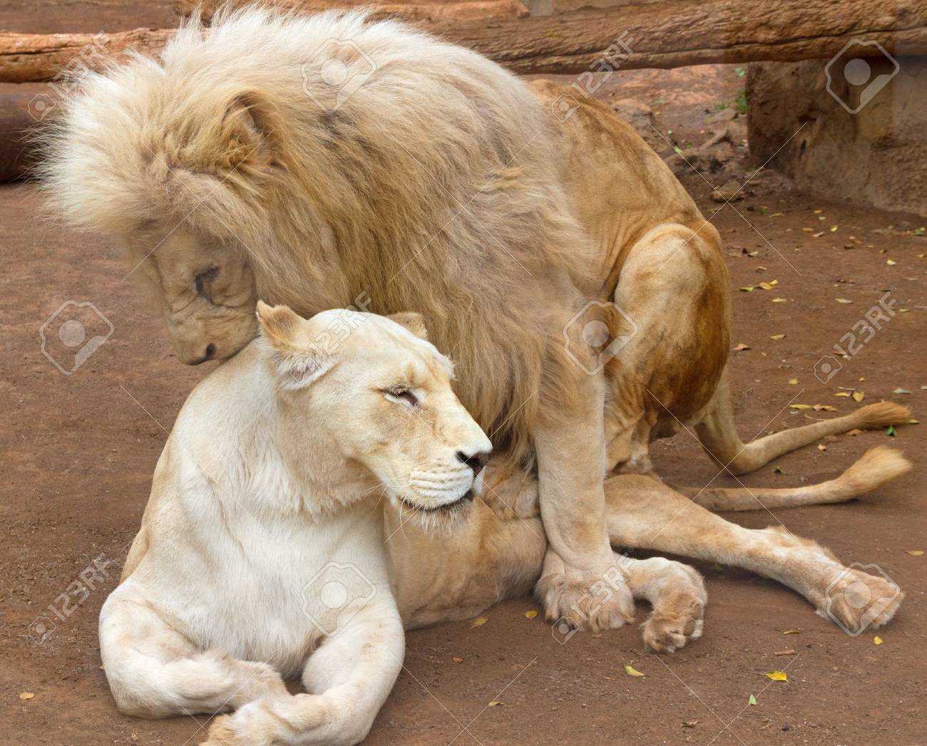Immagini Stock - Due Leoni Bianchi Stanno Dormendo. Image 142853322