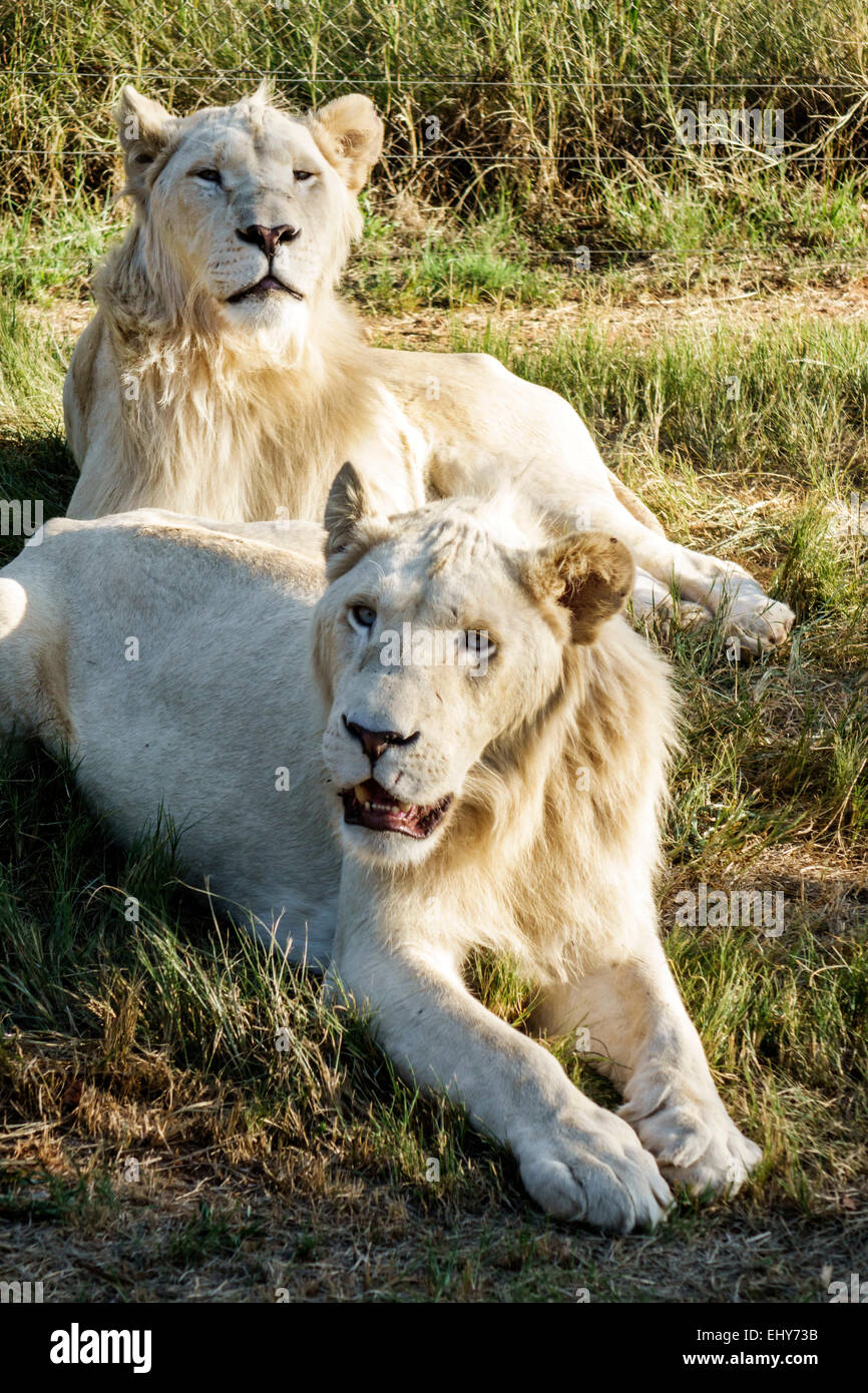 Johannesburg Sud Africa, African Lion Park, conservazione della fauna selvatica, leoni bianchi, visitatori viaggio viaggio turismo turistico luoghi di interesse, cultura Foto stock - Alamy