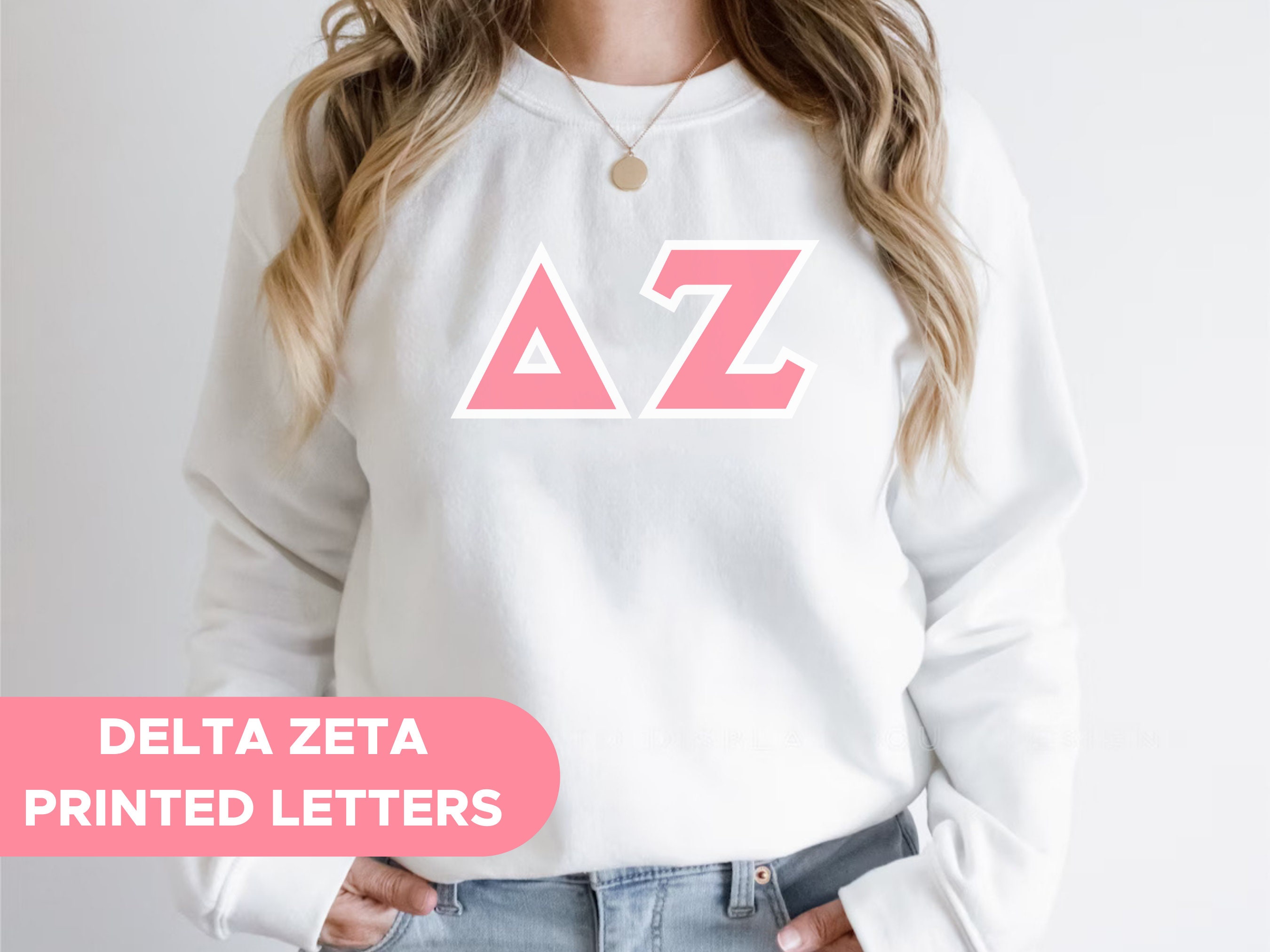 Delta Zeta Printed Sorority Letter Crewneck Sweatshirt Pink With White Border - Etsy