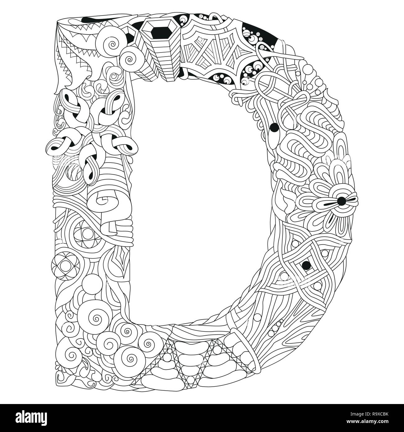 Hand-painted art design. Letter D zentangle object for coloring Stock Vector Image & Art - Alamy