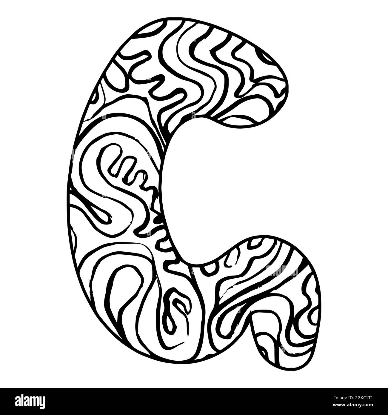 Alfabeto stilizzato Zentangle - lettera C per la colorazione. Illustrazione vettoriale. Modello etnico. Set di colori e contorni Immagine e Vettoriale - Alamy