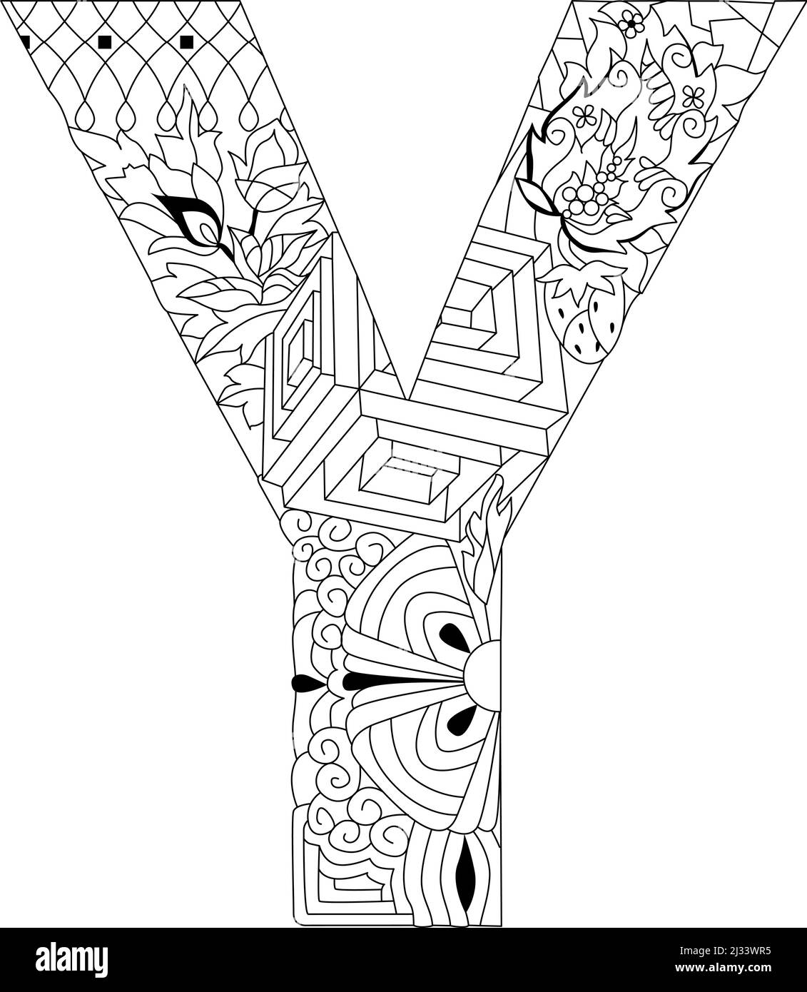 Alfabeto stilizzato Zentangle - lettera Y per la colorazione. Illustrazione vettoriale. Modello etnico. Set di colori e contorni Immagine e Vettoriale - Alamy
