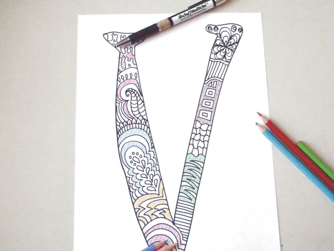 Letter V Coloring Alphabet Zentangle Initial V Adult Coloring - Etsy