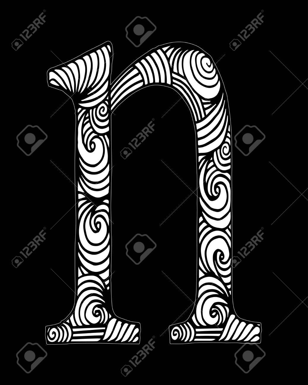 Zentangle Stylized Alphabet. Letter N In Doodle Style. Hand Drawn Sketch Font, Vector Illustration For Coloring Page, Makhendas Or Decoration Royalty Free SVG, Cliparts, Vectors, and Stock Illustration. Image 96060168.