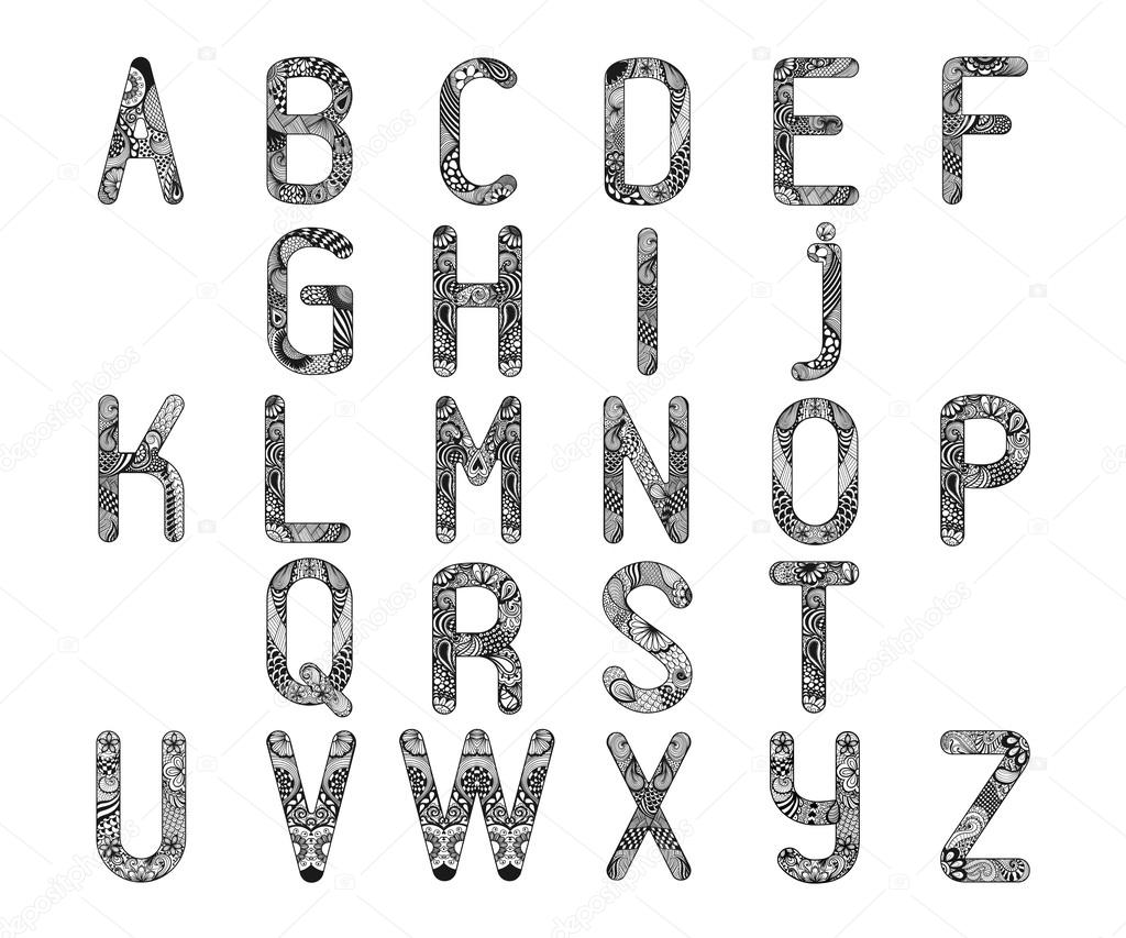 Disegni di Alfabeto Zentangle da colorare - Pagine da colorare stampabili gratuitamente