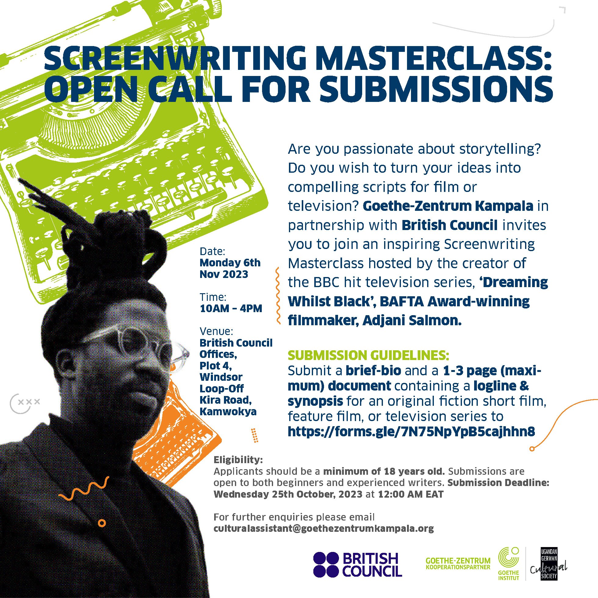 Dr Anna Adima on X: "Amazing opportunity for screenwriters in Uganda - join @GZ_Kampala and @UgBritish for a masterclass with BAFTA-winning filmmaker @theadjani! #eastafricaarts" / X