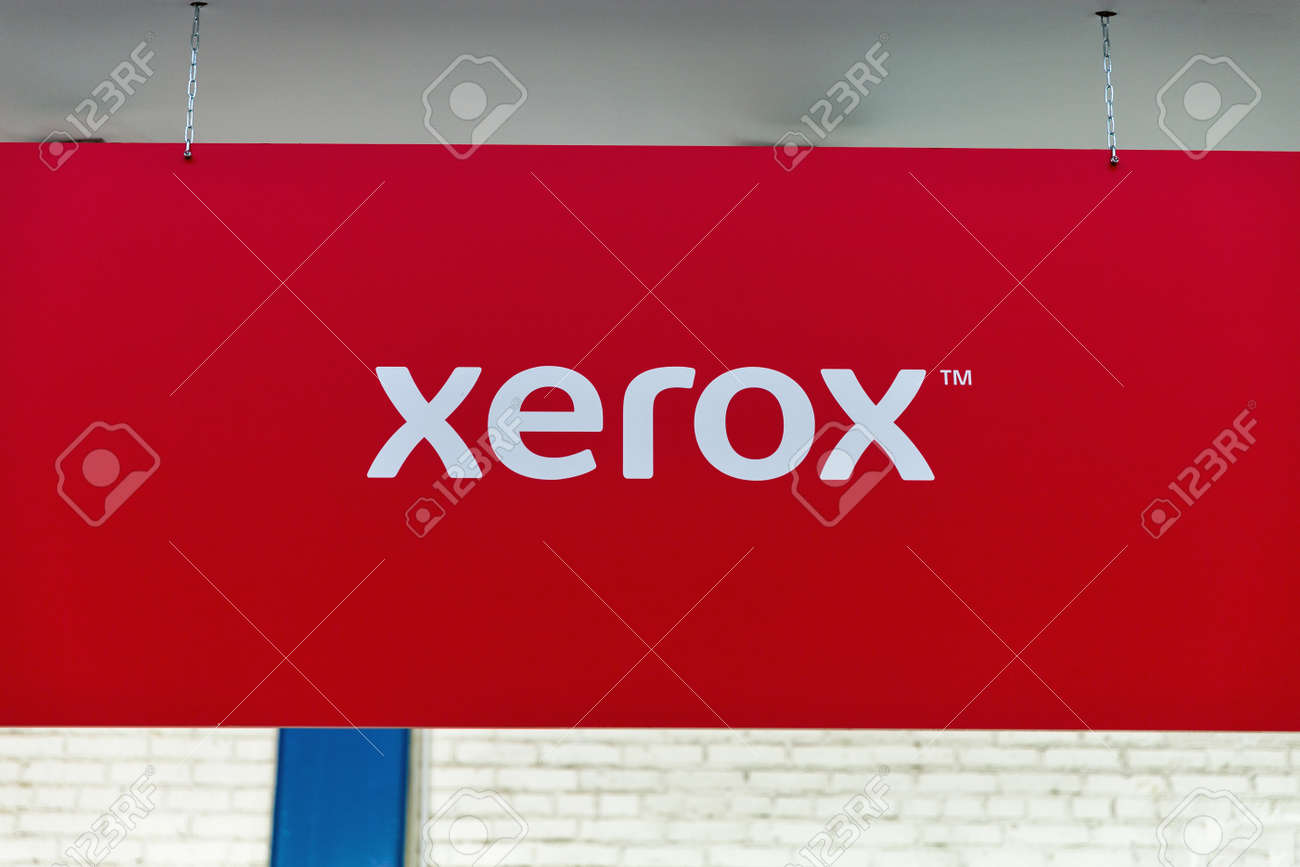 Bucarest, Romania - 02.13.2021: La facciata del centro commerciale Plaza Romania con molti loghi di aziende. Centro commerciale con negozi di abbigliamento, elettronica e alimentari Foto stock - Alamy