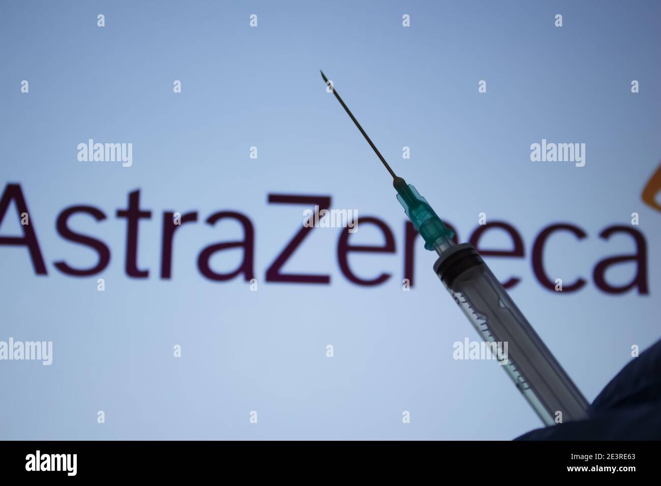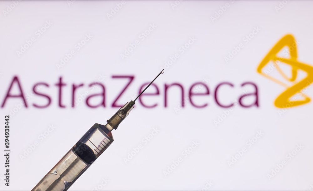 CHITTAGONG, BANGLADESH - Mar 15, 2021: a syringe and the AstraZeneca company logo in the background - AstraZeneca Covid-19 vaccine concept Stock Photo | Adobe Stock