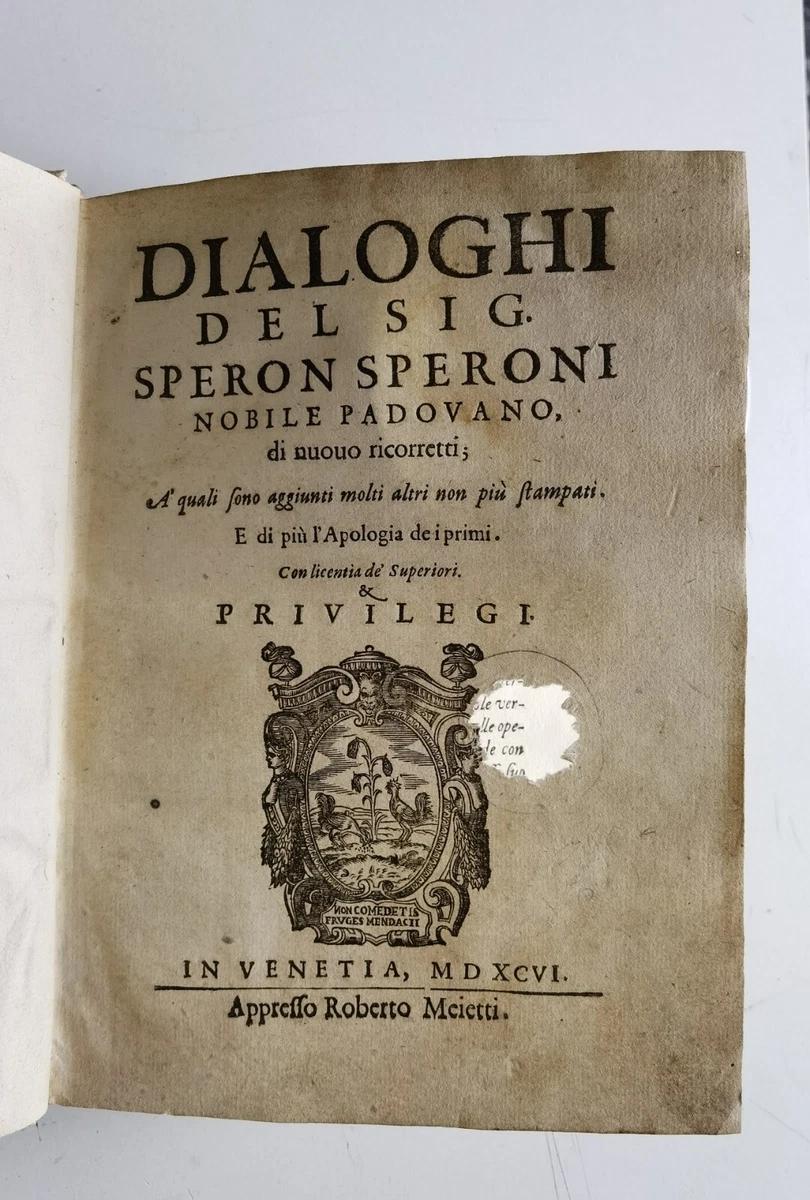 1596 - SPERONE SPERONI - DIALOGHI DEL SIG. SPERON SPERONI DEGLI ALGAROTTI | eBay