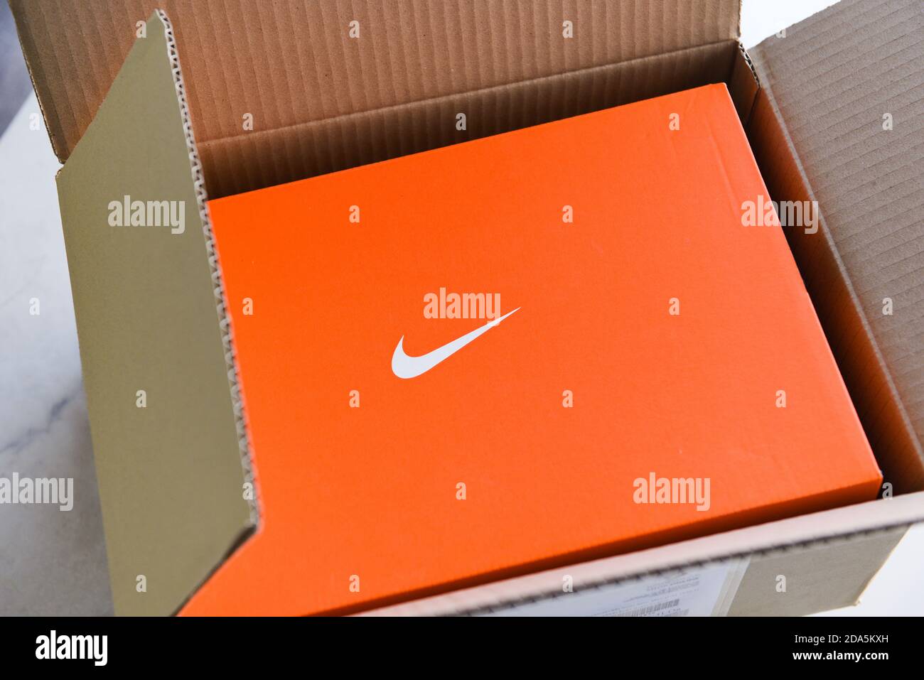 Logo Bianco Di Nike Sul Contenitore Arancio Di Scarpe Da Tennis Del Cartone Immagine Stock Editoriale - Immagine di nike, icona: 153574184