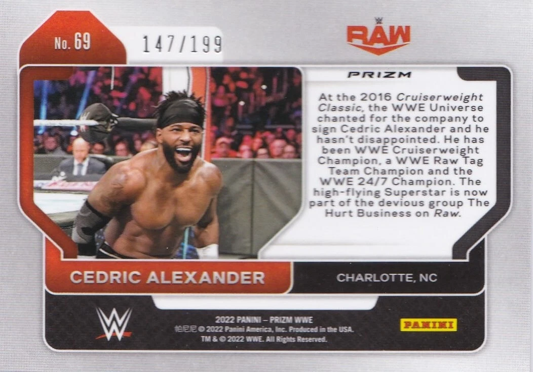 2022 Set Scatola Premium Panini Prizm WWE CEDRIC ALEXANDER #69/Argento grezzo 199 | eBay