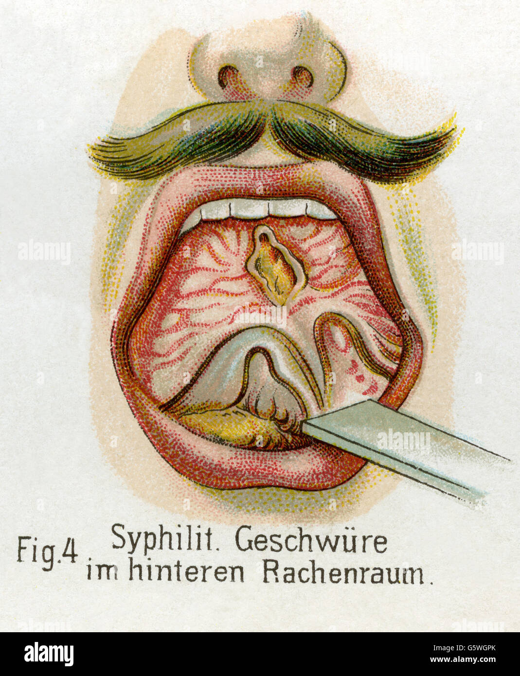 Medicina, malattie sessualmente trasmissibili, sifilide, blains sifilitici nella gola, da: Friedrich Eduard Bilz, New Naturopathic Treatment, Leipzig, Germania, 1902, Additional-Rights-Clearences-Not Available Foto stock - Alamy