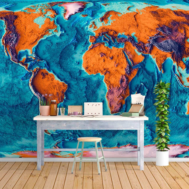 🥇 Carta da parati o murale mappa del mondo disegno topografico 3d 🥇