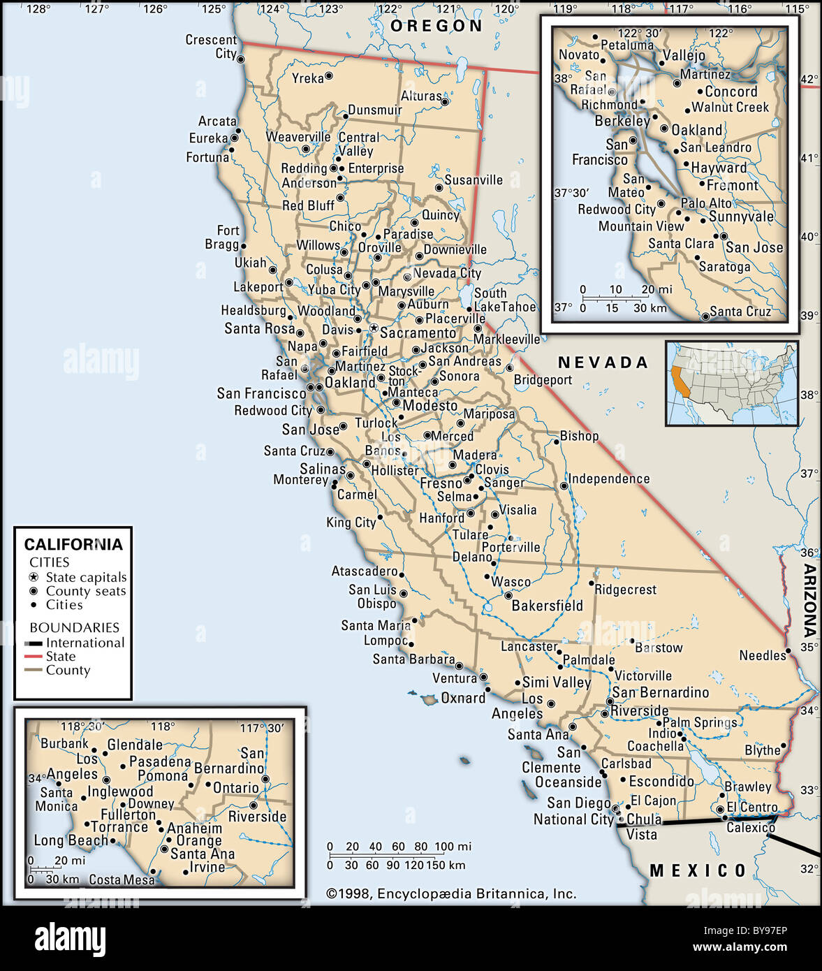 Mappa Politico della California Foto stock - Alamy