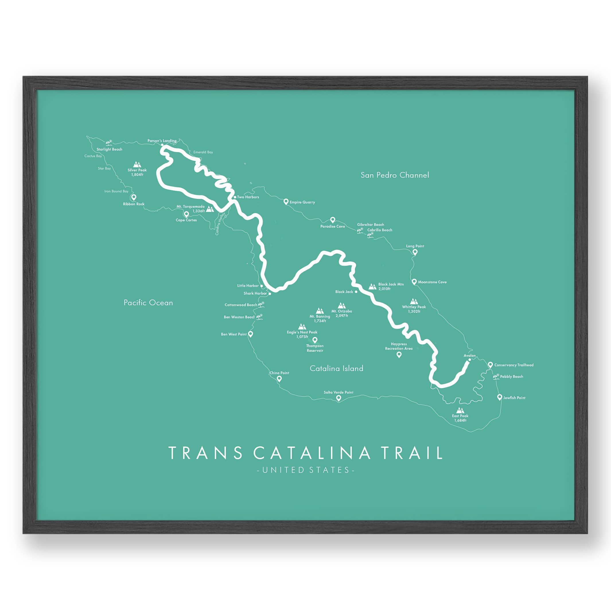 Trans Catalina Trail Map - USA Hiking Poster
