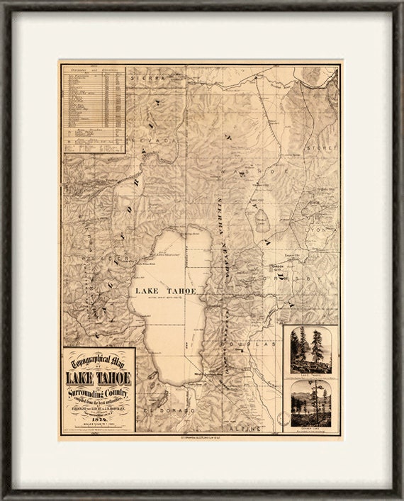 Map of Lake Tahoe in 1874 | Lake tahoe, Lake tahoe map, Lake tahoe california