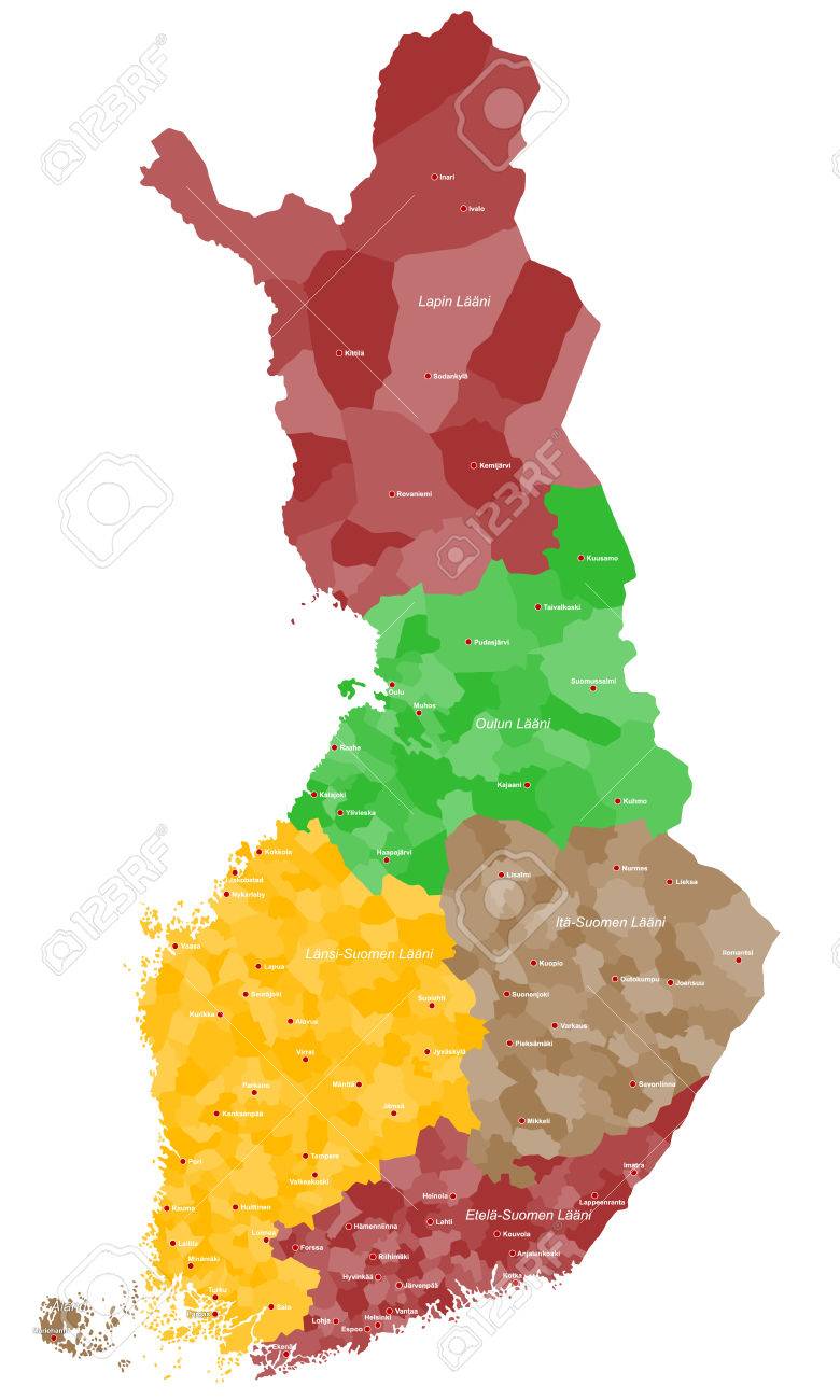 Mappa Delle Regioni Finlandesi Illustrazione Vettoriale - Illustrazione di geografia, finlandia: 204658537