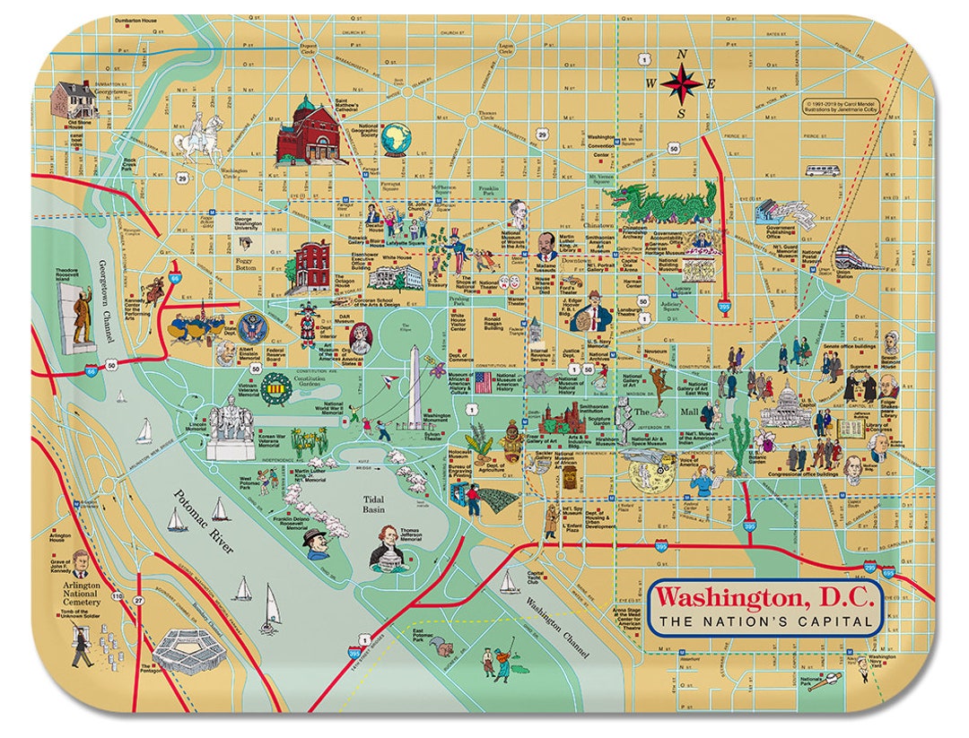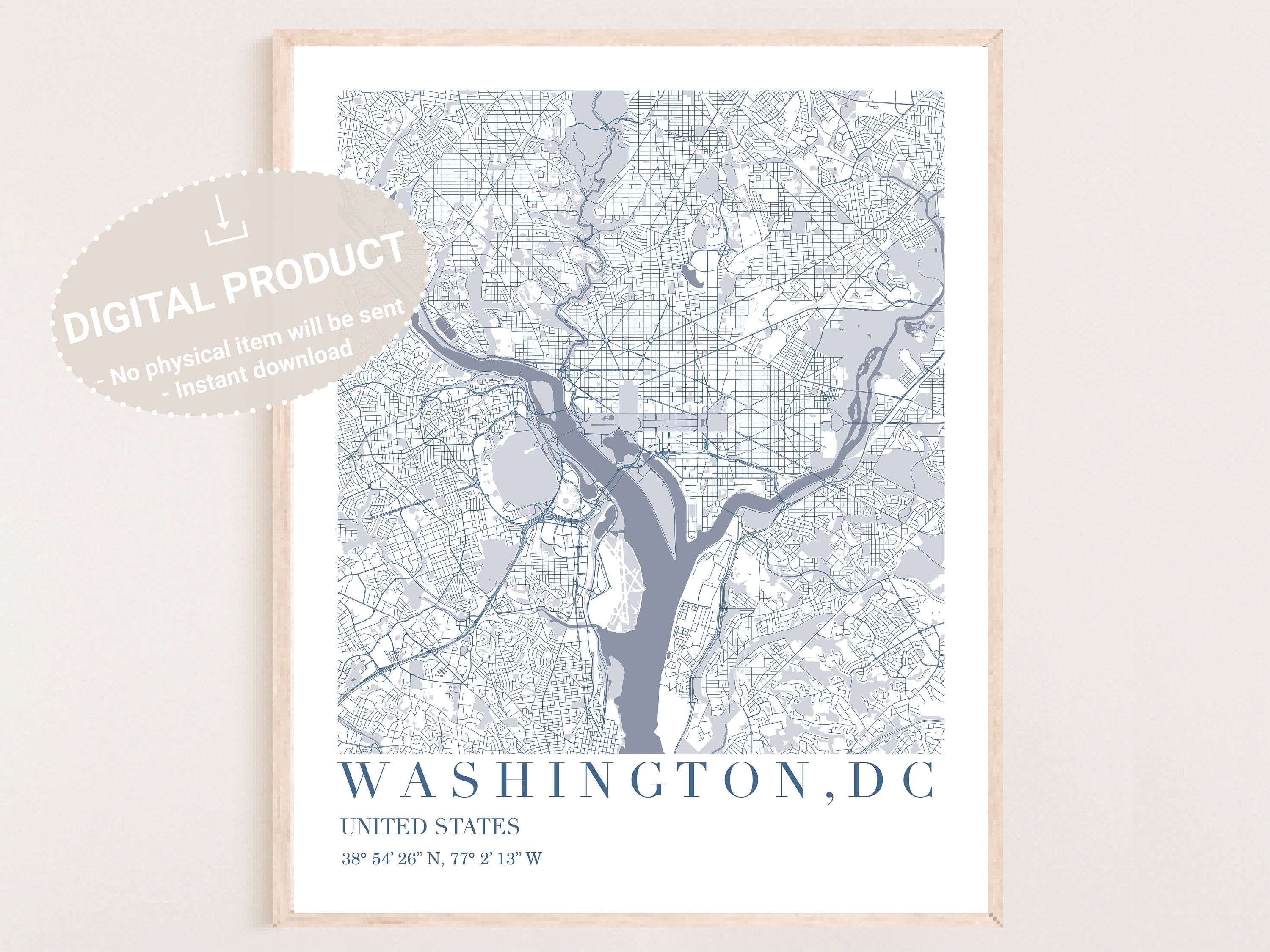 Mappa illustrata di Washington DC USA con punti di riferimento e punti salienti delle strade principali - Etsy Italia