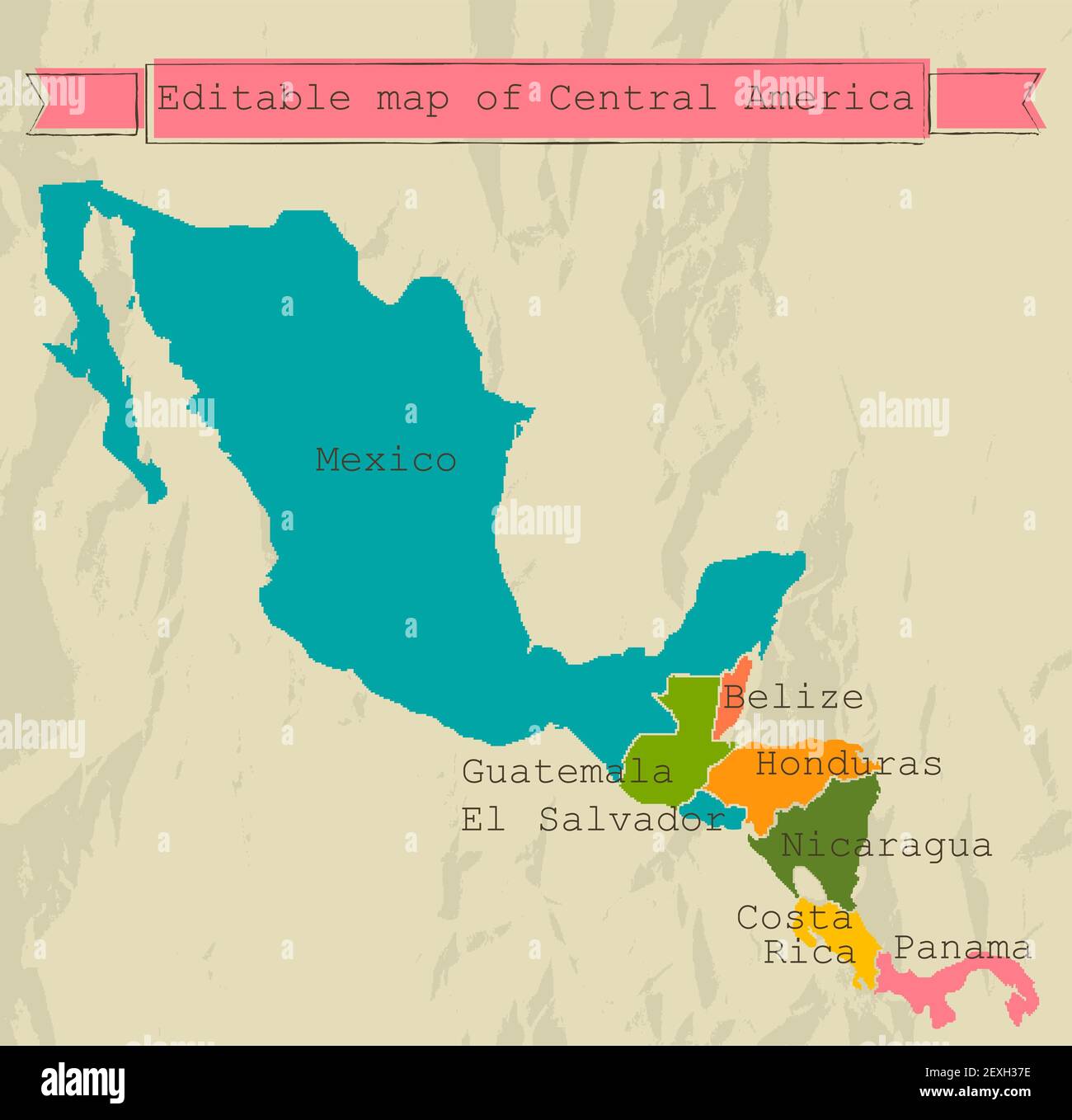Middle America Political Map With Capitals And Borders. Mid-latitudes Of The Americas Region. Mexico, Central America, The Caribbean And Northern South America. Illustration. English Labeling. Vector. Royalty Free SVG, Cliparts, Vectors, and